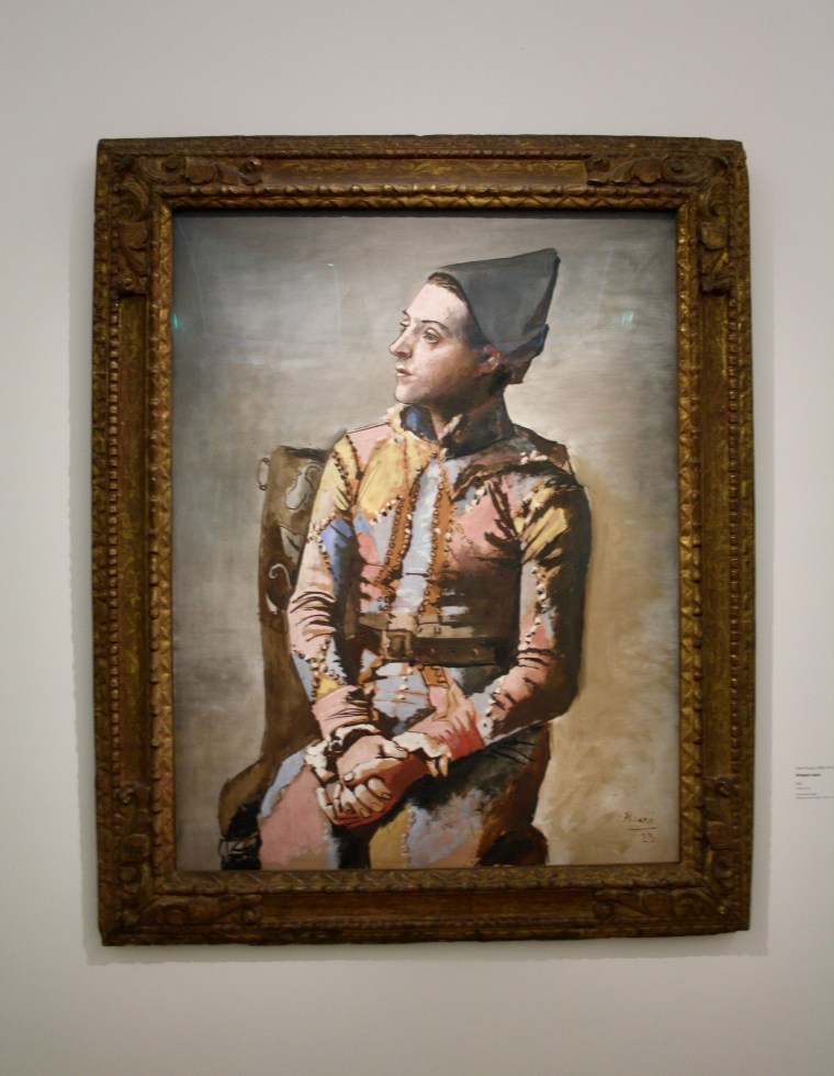 On arrive ensuite à ma salle préférée, celle dédiée au personnage de l’arlequin. Figure majeure de toute son oeuvre, on le retrouve aussi dans une série. Pablo Picasso teste un nouveau genre de portrait et met en scène le peintre espagnol Jacinto Salvadó tout en gardant les caractéristiques de ce personnage typique de la comédia dell’arte !