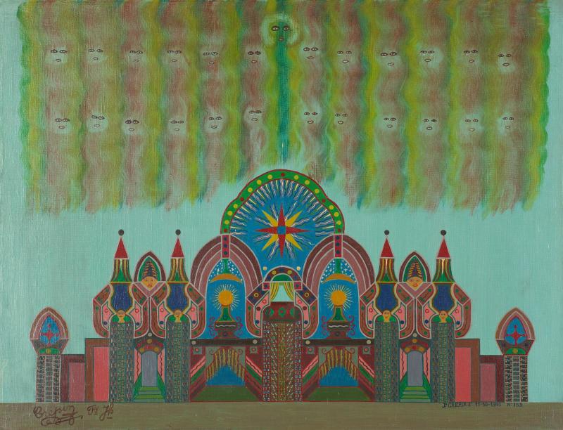 Ses œuvres à lui aussi sont imprégnées de symbolisme. On reconnait des édifices ressemblant à des temples.