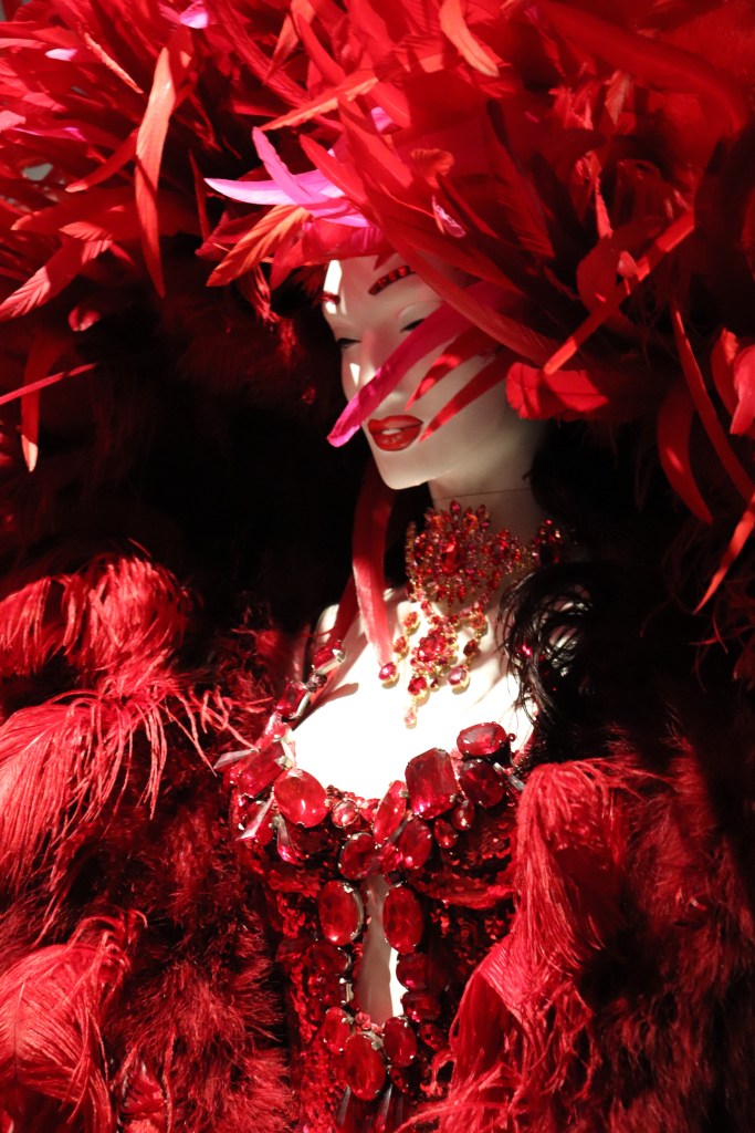 L’exposition « Thierry Mugler, couturissime » actuellement au musée des Arts Décoratifs nous invite donc à nous immerger dans le monde de ce couturier peuplé de créatures extraordinaires. Dans cette exposition, nos sens sont sollicités. Des projections, de la musique, des odeurs, c’est une réelle expérience.