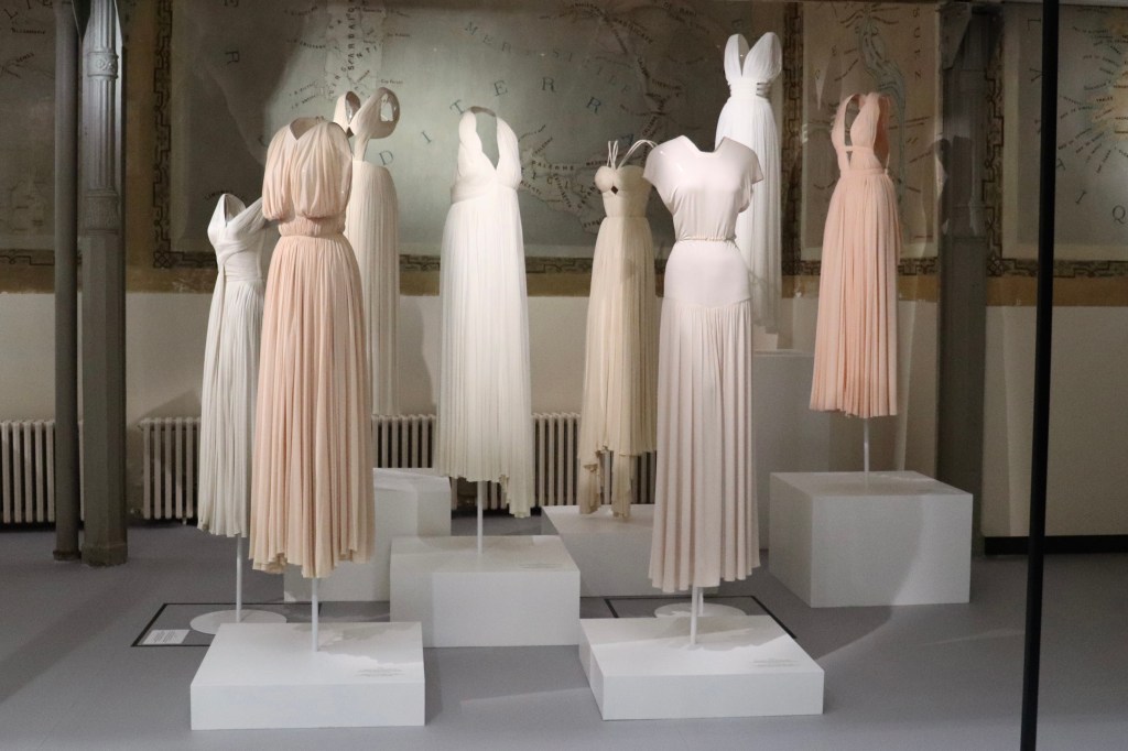 L’exposition « Alaïa / Grès : Au-delà de la mode » nous expose que des robes. Cette pièce du vestiaire féminin était sans doute une des favorites de ces deux grands couturiers du XX° siècle. Une soixantaine de robe se déclinent alors devant nous à travers différentes couleurs et différentes coupes. C’est dingue de voir toute cette diversité. Les deux artistes étaient d’accord sur un point : « Dès que l’on a trouvé quelque chose de caractère personnel et unique, il faut l’exploiter à fond et et en poursuivre la réalisation sans s’arrêter et jusqu’au bout » (Madame Grès). Les deux visaient l’excellence et n’ont cessé de recommencer jusqu’à la perfection presque de manière obsessionnelle. Leur but était de créer des robes uniques, intemporelles, faites pour durer dans le temps.
