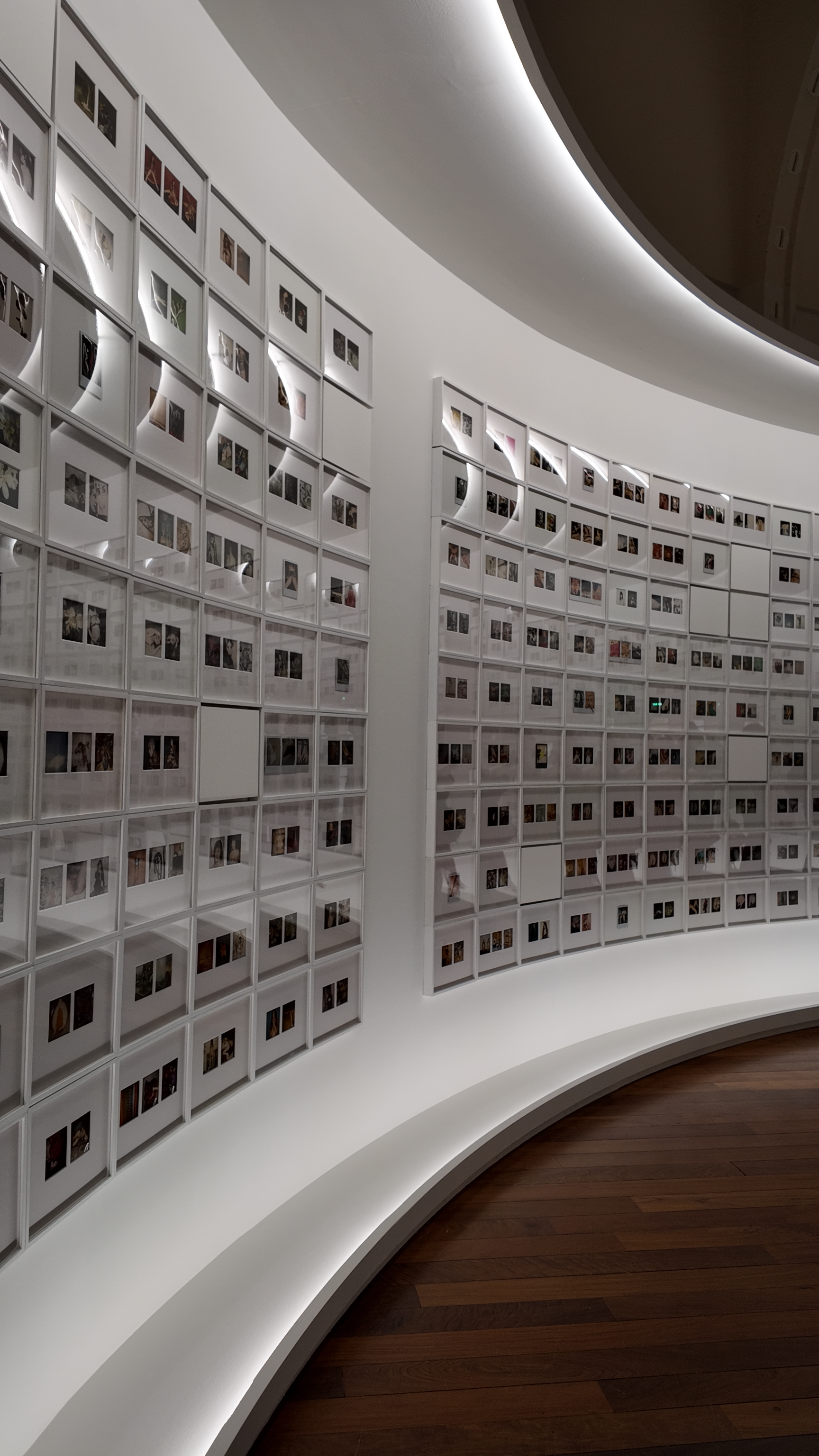 Dans la rotonde du quatrième étage du musée des arts asiatiques de Paris, nous retrouvons 43 colonnes composées de 9 cadres allant du sol au plafond. Cette disposition est celle qui a été mise en place par Stephane André chez lui. Une pièce de son appartement était entièrement dédiée à ces photos. Il y en avait du sol au plafond.