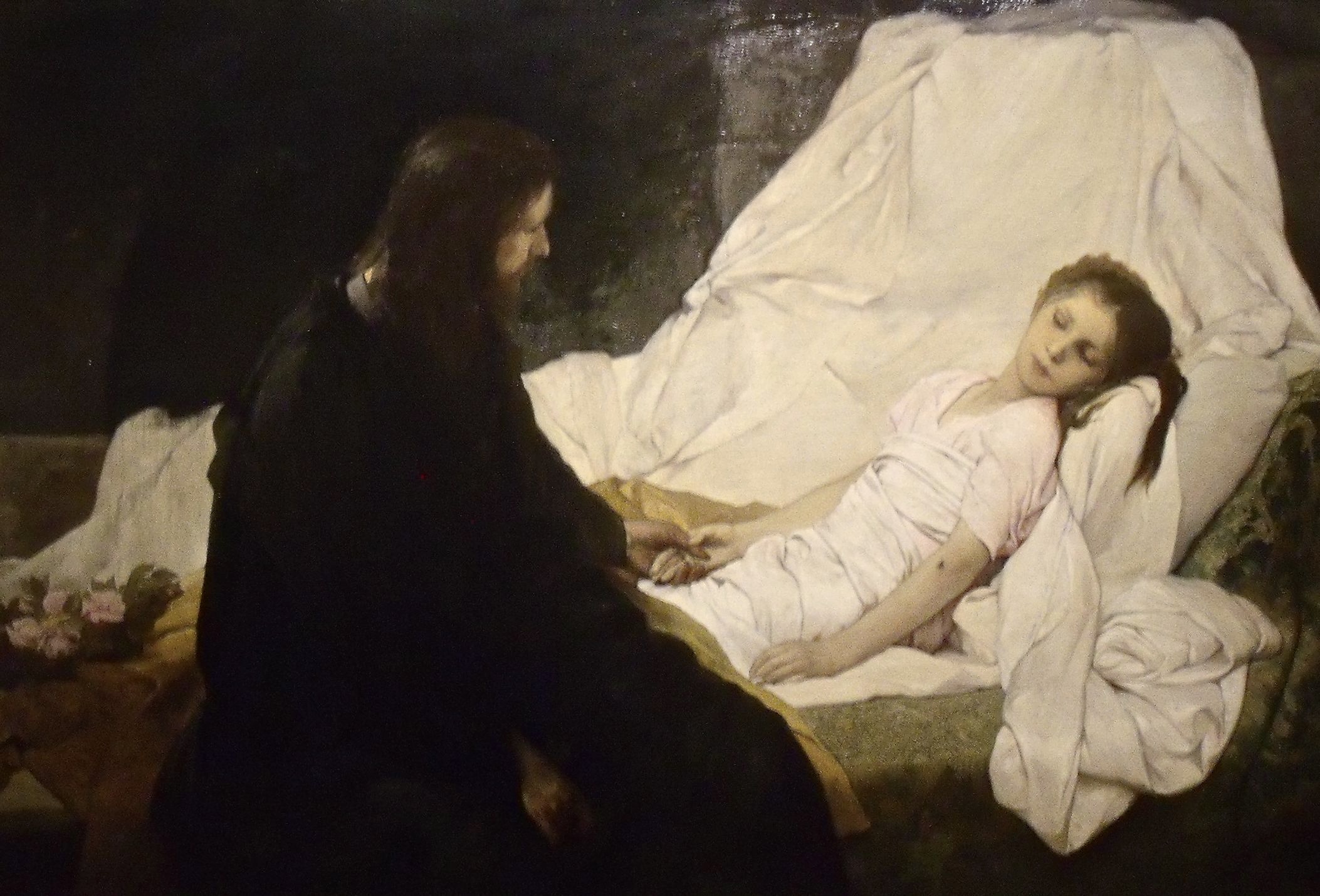Dans l’histoire, Jésus soigne la fille de Jaïre et celle-ci reprend vie. L’artiste a néanmoins choisi de représenter le moment où elle est encore endormie.