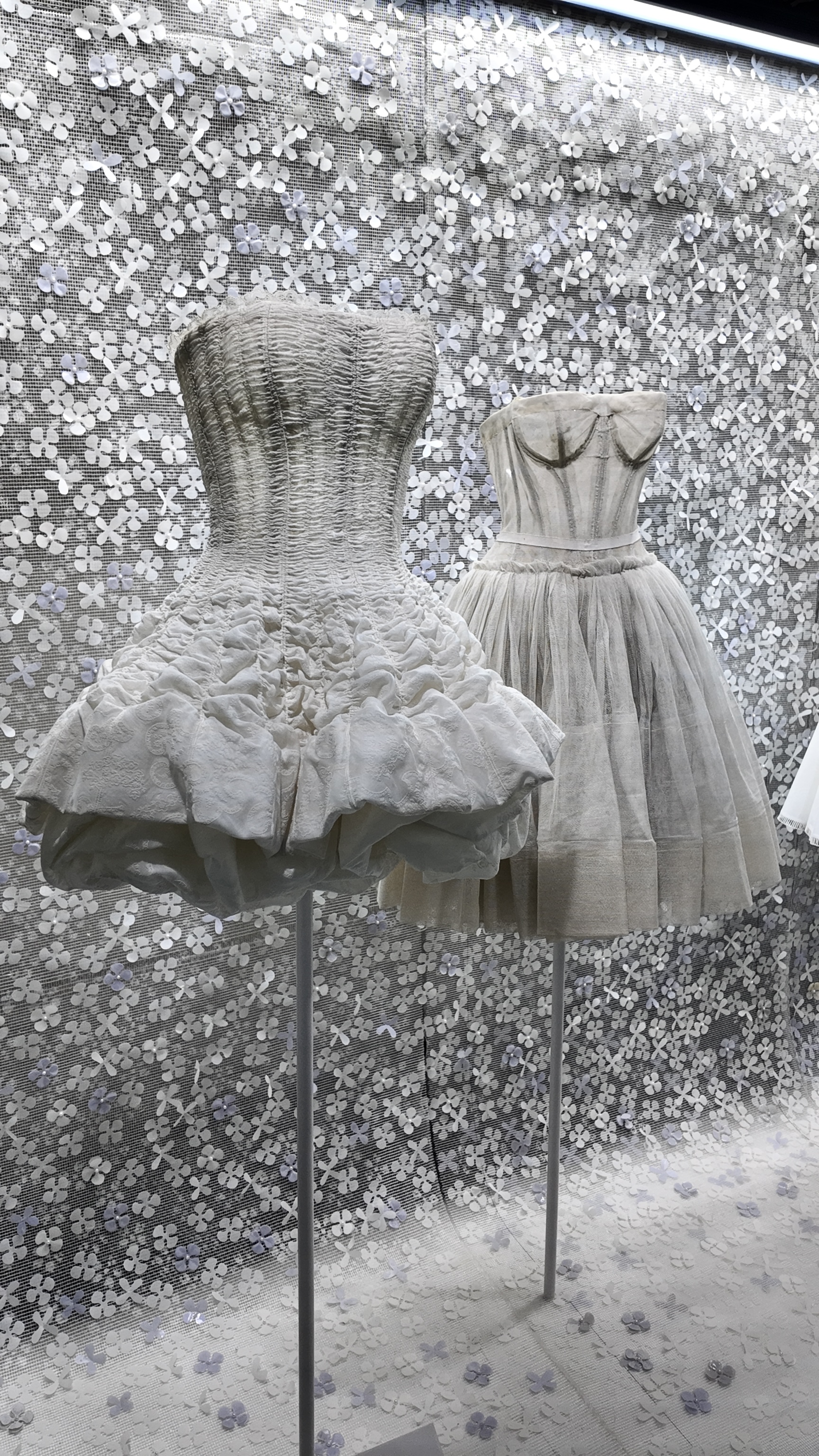 La Fondation Azzedine Alaïa propose donc dans son exposition « Azzedine Alaïa et Christian Dior, deux maîtres de la Haute Couture » de découvrir 70 modèles de ces deux très grands couturiers. Les pièces communiquent entre elles dans des décors fleuris rappelant fortement l’esthétique de Christian Dior. Les voir cote à cote nous permet de constater et de comprendre l’influence que ce grand maitre de la couture a pu avoir sur Azzedine Alaïa.